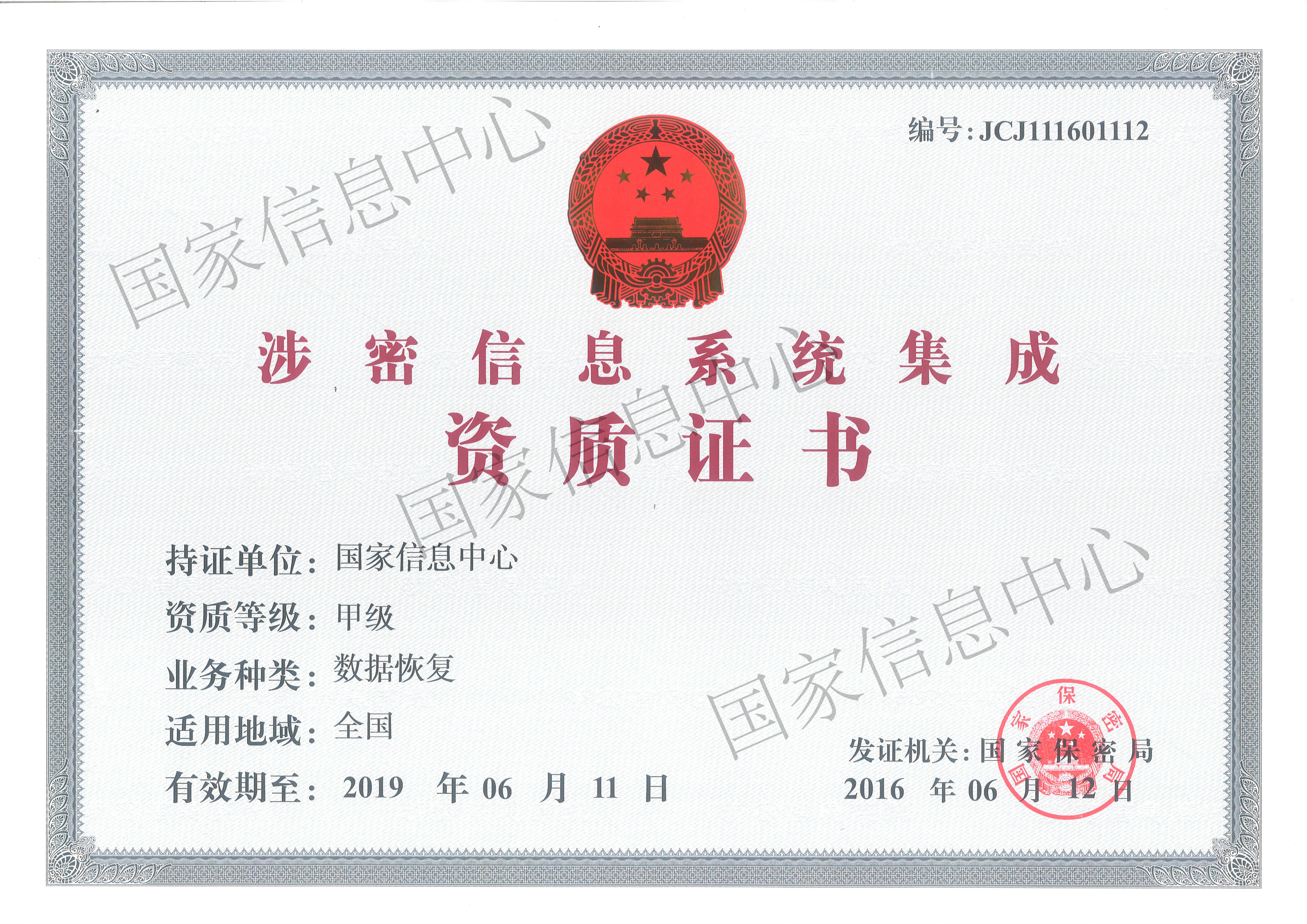 涉及国家机密的计算机信息系统集成资质(单项数据修复)