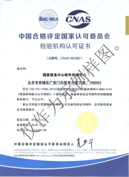软件评测中国合格评定国家认可委员会检验机构认可证书(CNAS)