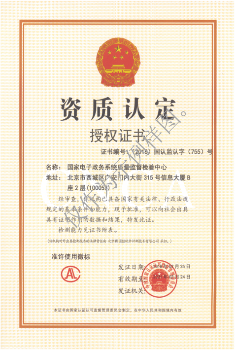 国家电子政务质检中心资质认定授权证书(CAL)