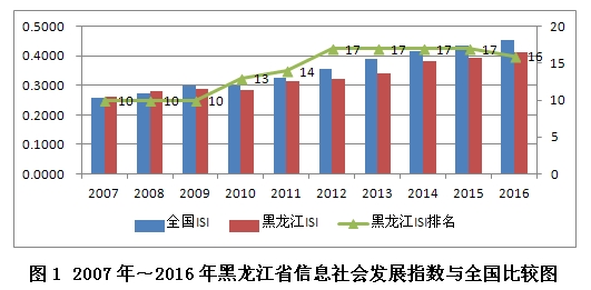 2016年,根据bet36在线开户对全国31个省、直辖市进行信息社会指标测算,黑龙江省信息社会发展指数(ISI)为0.4109,比全国平均水平0.4523低10.1%,全国排名第16位,处于全国的中等水平。