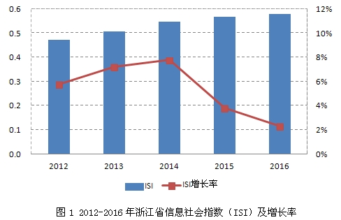 2016年浙江省信息社会指数为0.5804,处于信息社会发展的转型期 。
