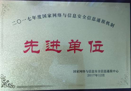 2017年12月22日,国家网络与信息安全信息通报机制联络员2017年度工作培训会在京召开,我中心安排负责政务外网安全管理的相关人员出席。会上,我中心网络安全通报工作受到公安部国家网络与信息安全信息通报中心表彰,并被授予“二〇一七年度国家网络与信息安全信息通报机制先进单位奖”。