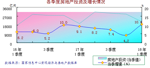 在去库存政策的指引下,2017年房地产投资增长平稳,销售形势较好,房屋销售面积和销售额均再创新高,但增速保持逐月回落。2018年1季度,市场整体延续去年的平稳回落态势,但投资增速出现意外加速,实现两位数增长;房屋销售增速继续回落,但下降趋势有所放缓;房价整体涨幅有所抬头,部分城市房价上涨压力较大;企业资金来源渠道偏紧,个人按揭贷款降幅继续扩大;企业土地购置基本与上年同期持平,企业新开工意愿有所上升。