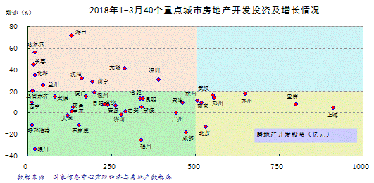 2018年一季度,40个重点城市共完成房地产开发投资11376亿元,同比增长6.7%,增速比全国增速低3.7个百分点。