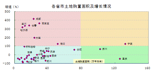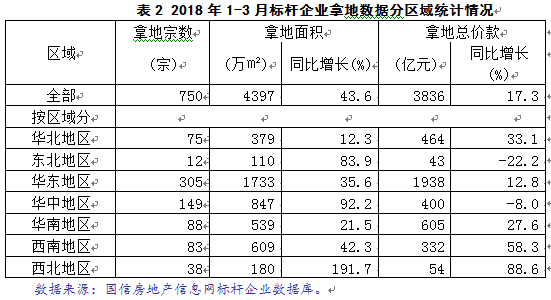 (说明:标杆企业拿地信息统计口径与房地产企业土地购置面积统计口径不同,前者为标杆企业(含子公司和关联公司,也包括非房地产企业)在报告期内的拿地面积,既包括在土地招拍挂市场中竞得的土地,也包括通过二级市场和股权转让、合作等方式获得的土地,后者则为房地产开发企业在本年内通过各种方式获得土地使用权的土地面积,不包括非房地产企业的拿地。)