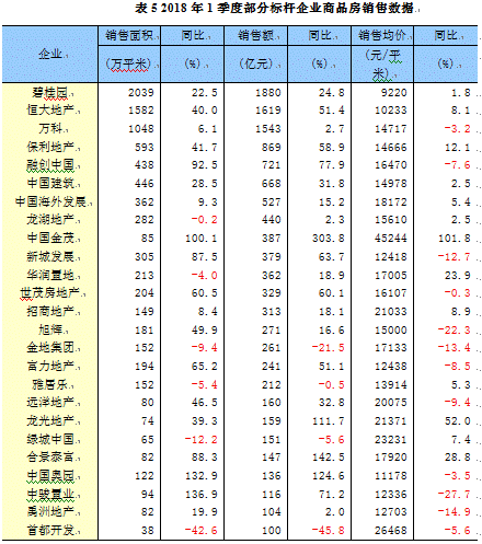 2018年一季度,全国39家标杆房地产企业共销售房屋9606万平方米,占全国商品房销售面积的31.9%,同比增长25.6%,增速比全国平均水平高22个百分点;实现销售额12855亿元,占全国商品房销售额的50.2%,同比增长28.6%,增速比全国平均水平高18.2个百分点。